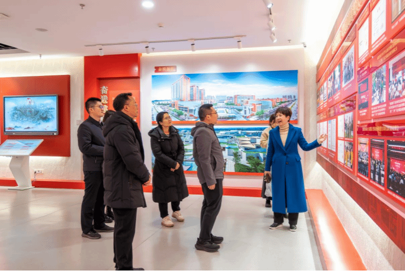 在党建思政教育基地,周舟部长详细介绍了学校推进党建与育人深度融合的实施路径、思政教育工作创新与育人成果。陈国栋书记认真听取讲解,对学校将思政教育全方位融入人才培养全过程的做法给予高度评价。他表示,师生展现出的良好精神风貌,充分反映出学校党建育人工作的扎实成效和积极影响。
