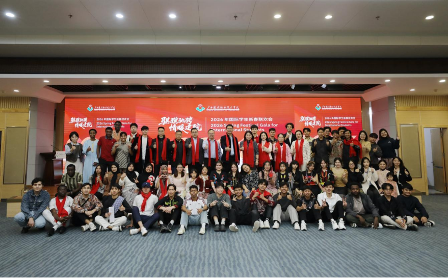 联欢会上,来自老挝的李美西和达万同学以清晰流利的中文担任主持,充分展现了学校国际中文教学的扎实成效;印度尼西亚的传统舞蹈充满异域风情,老挝学生带来的歌舞抒情优美,多国留学生用中文朗诵《骏马迎春贺新年》,年味十足,共同呈现出多元文化交融的青春风采。学校国际学生合唱团分别用汉语和多种外语演绎的中国民歌《茉莉花》,更是赢得阵阵掌声。该作品曾荣获2025年广西来华留学生中国民歌大赛二等奖,中西交融、古今对话,成为文明互鉴的生动诠释。