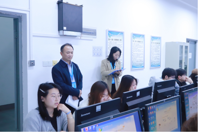 学校副校长付春松在武鸣校区7号教学楼巡查