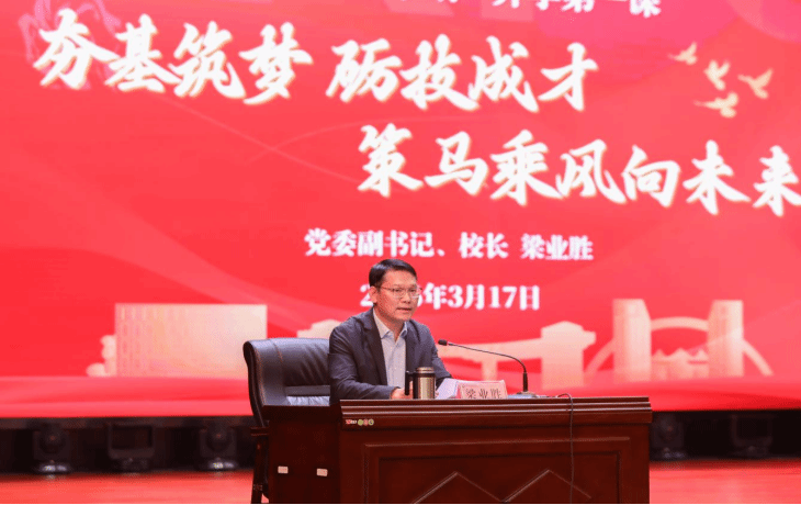 面向新学期新征程,梁业胜校长对全体同学提出四点殷切希望:一是树立远大理想,与祖国发展同频共振,做有信仰的新时代青年;二是勇担时代使命,锤炼过硬综合素质,做有担当的新时代青年;三是坚持持续奋斗,涵养敢为人先品格,做有干劲的新时代青年;四是坚持守正创新,拥抱人工智能新时代,做有本领的新时代青年。
