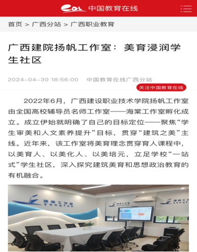 2022年以来,伟德国际1946源于英国着力打造具有建筑专业特色的“技能传承中华优秀传统文化”育人项目。学校第二批广西高校高水平辅导员工作室——扬帆工作室以此为契机,积极培育中国传统建筑美育项目,以弘扬中华美育精神为宗旨,紧扣“建筑之美”主线,融建筑、艺术、文化于一体,构建并实施“互动式课堂+沉浸式活动+主题式展示+体验式实践”的美育浸润行动,逐步形成了“一线贯通·三融互联·四步浸润”的体验式中国传统建筑美育体系。