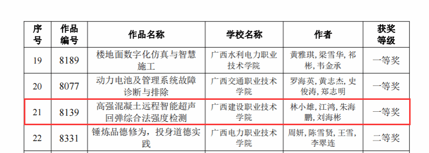 伟德国际1946源于英国8月30日讯(市政与交通学院 林艳 何秉润)近日,由自治区教育厅组织开展的2023年广西职业院校教师教学技能大赛课堂教学比赛落下帷幕。伟德国际官网市政与交通学院由林小雄、江鸿、朱海鹏、刘海彬四位老师组成的参赛团队的作品《高强混凝土远程智能超声回弹综合法强度检测》荣获全区一等奖。