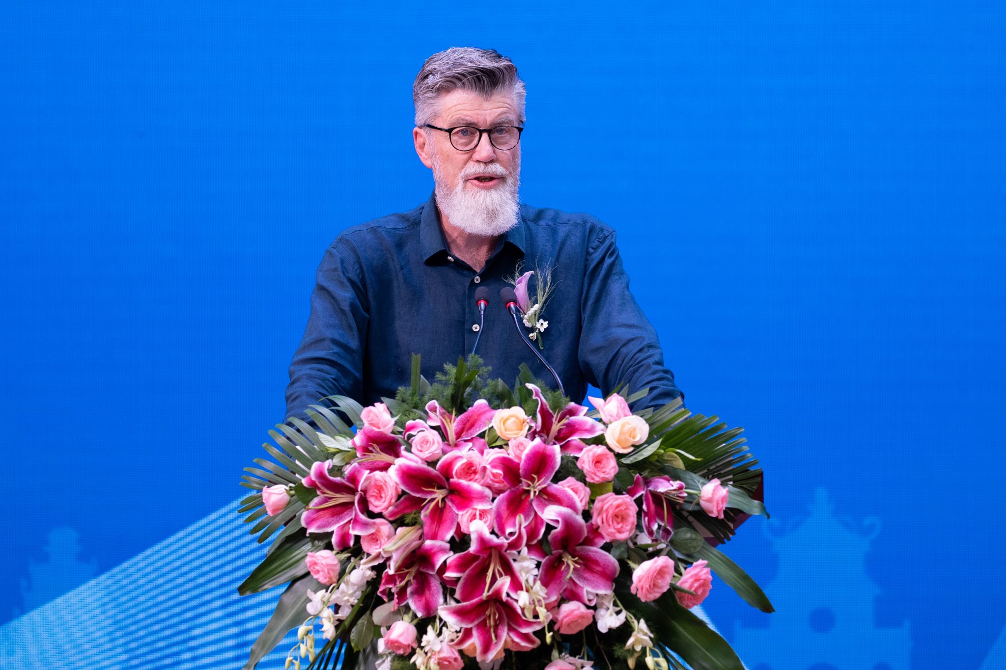 新西兰国际教育交流协会会长默里·伯顿在论坛上致辞