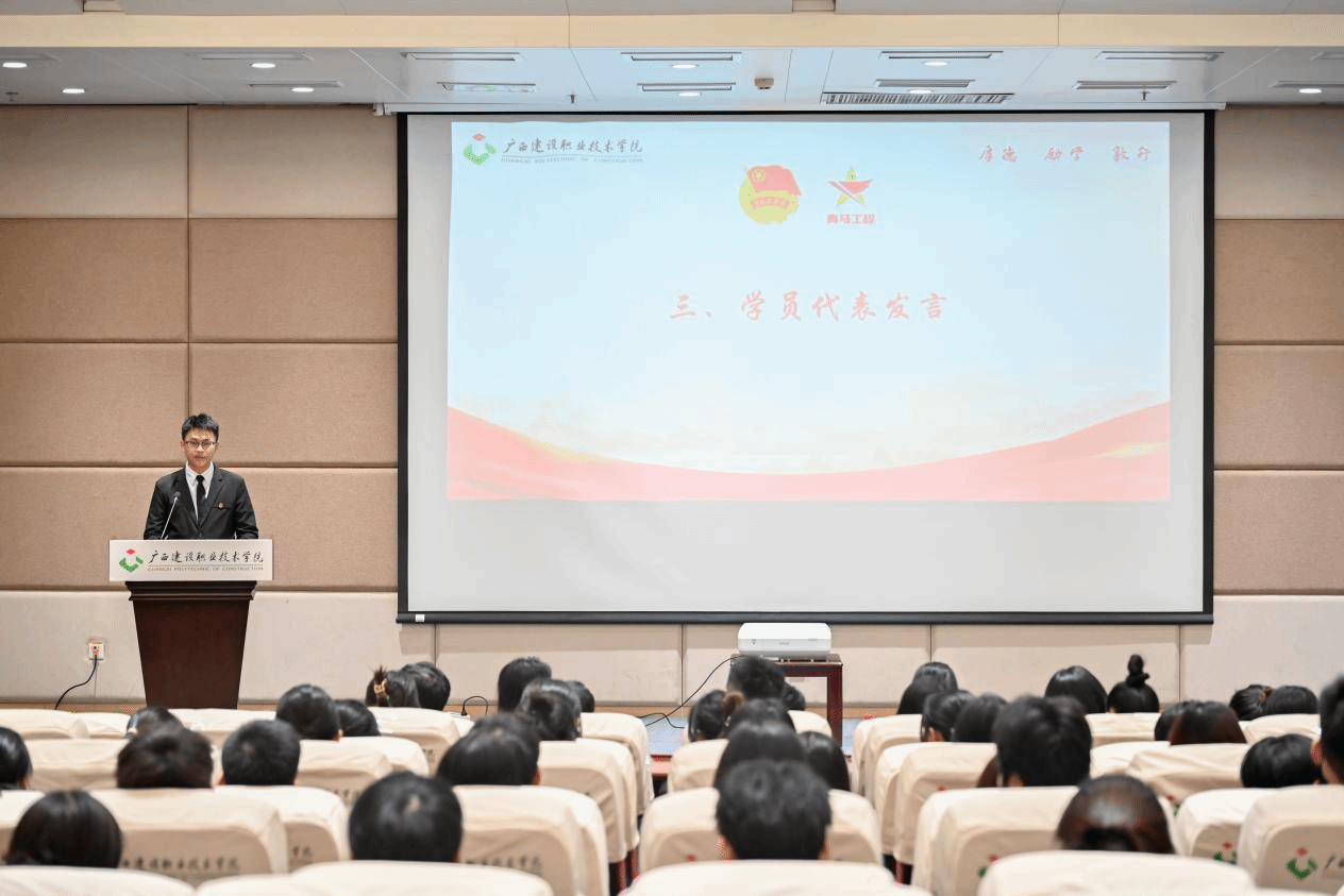 学校团委曾小贵书记宣读“青马工程”骨干班班委名单。学员代表伍梓萱同学在发言中号召青马班全体学员,要坚持不断学习理论知识,发扬顽强拼搏的勇气,要树立正确的人生观和价值观,崇尚真理、追求卓越,勤于思考,勇于实践,努力提高自身思想政治素质、政策理论水平、创新能力、实践能力和组织协调能力,为学校的建设和发展作出贡献,让青春在全面建设社会主义现代化国家的火热实践中绽放绚丽之花。