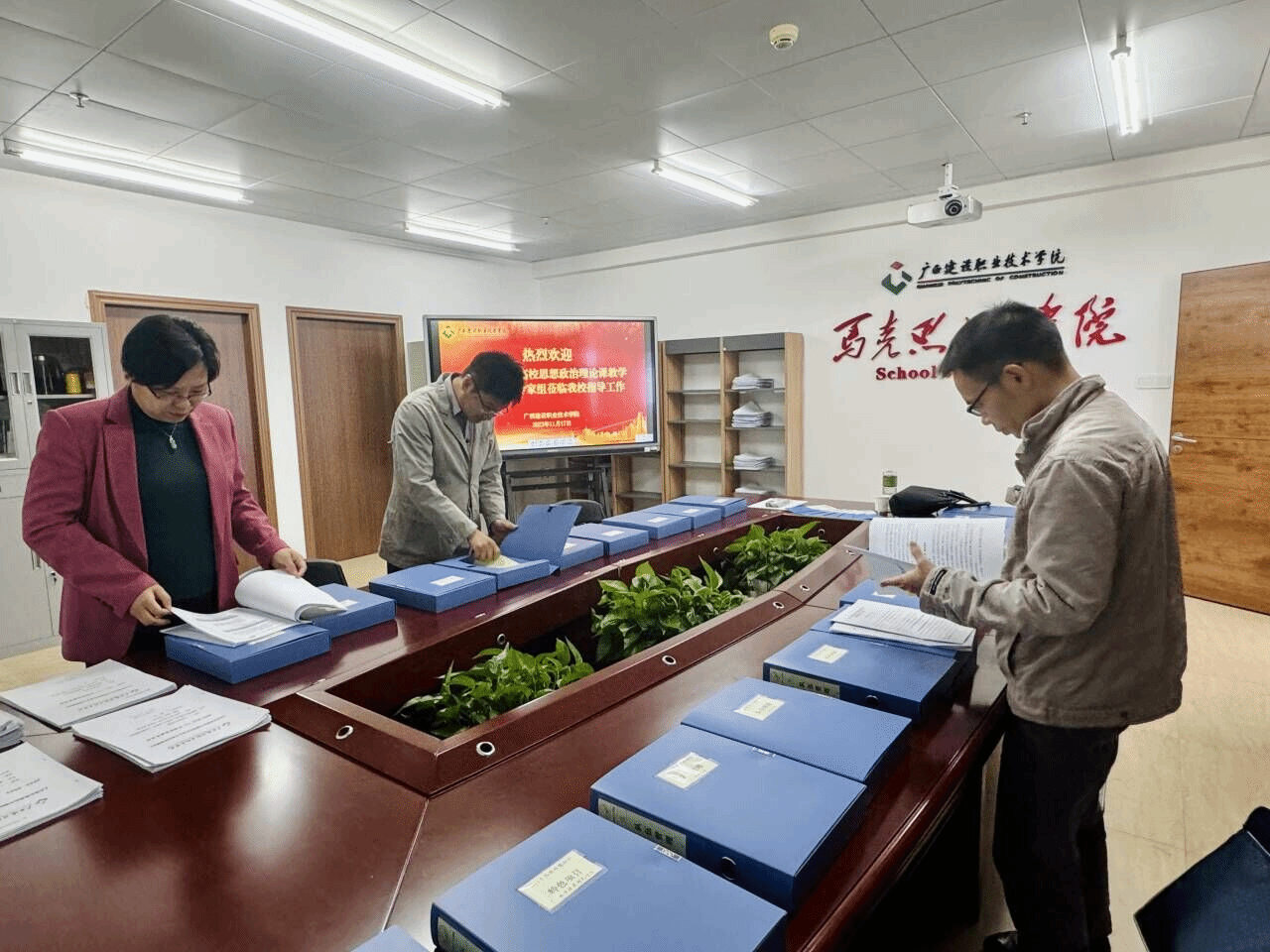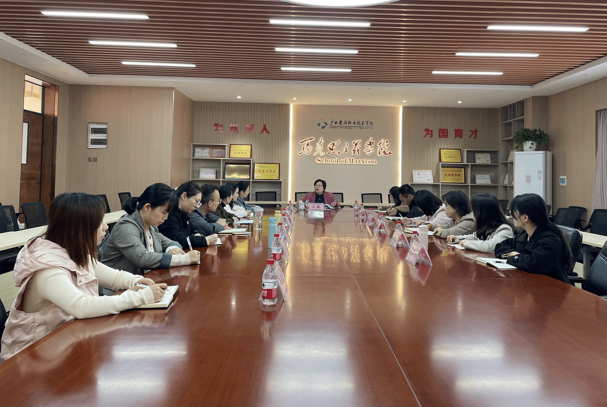 伟德国际1946源于英国11月18日讯(文/马克思主义学院 曹桃 图/党委宣传部 韦植巍 马克思主义学院 毕莉)11月17日上午,以广西民族大学党委副书记陈铭彬教授为组长,桂林理工大学马克思主义学院院长梁英教授、南宁师范大学马克思主义学院徐广东教授、广西民族大学马克思主义学院覃青必教授为组员的全区高校思想政治理论课教学巡察组莅临伟德国际官网开展巡察指导工作。学校党委书记刘晓红,党委副书记曾繁雄,各相关职能部门负责人、各二级学院党政负责人和思想政治理论课教师代表出席了工作汇报会和反馈会。