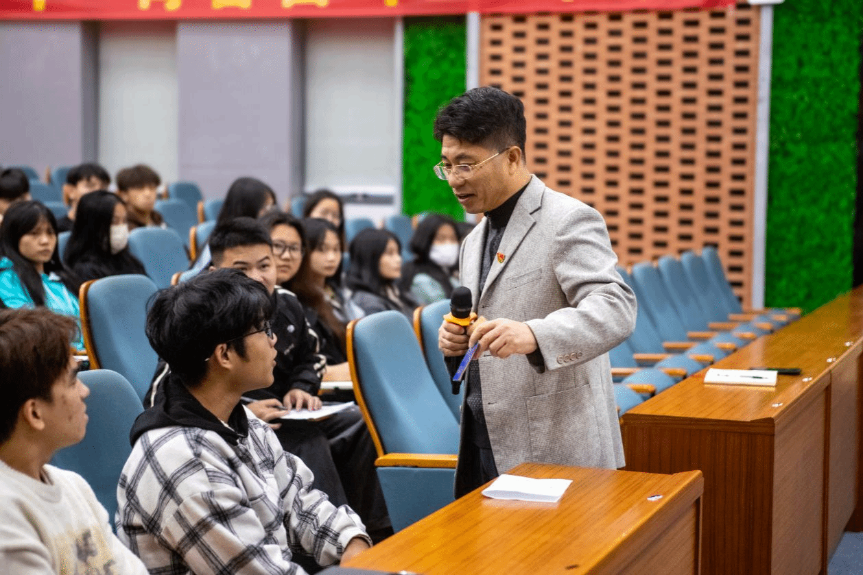 伍耿清副校长重点从以下四个方面进行了讲解:在“接续奋斗,追求千年梦想”中,带领同学们共同回顾了中国现代化发展的历程,共同理解与领悟中国共产党在现代化发展进程中发挥的重要作用;在“立足国情,开辟全新道路”中,对中国式现代化的概念进行细致讲解,以深入浅出的方式以及一个个贴切实际的案例,引导同学们正确理解中国式现代化,启发同学们思考;在“凝心聚力,推进复兴伟业”中,与同学们共同深入学习党的二十大报告当中关于中国式现代化的本质要求,激励同学们坚定跟党走中国特色社会主义道路的信念,努力为祖国的发展建设贡献青春力量;在“踔厉奋发,敢于担当作为”中,带领同学们学习习近平总书记关于青年工作的重要思想。伍耿清副校长强调,广大青年要善于把握时代机遇,提升专业素养,提高专业技能水平,坚定不移听党话、跟党走,怀抱梦想又脚踏实地,敢想敢为又善作善成,立志做有理想、敢担当、能吃苦、肯奋斗的新时代好青年。