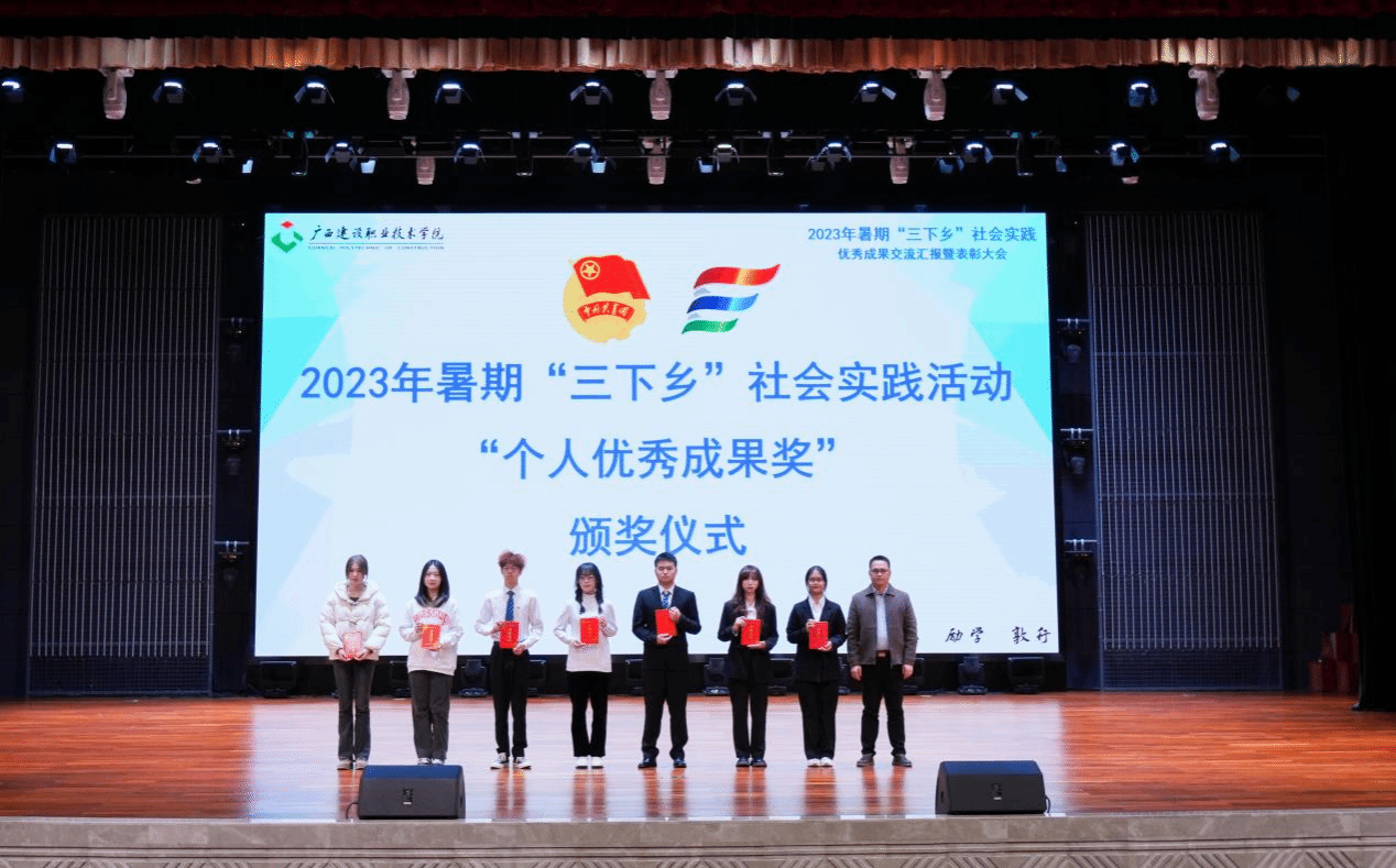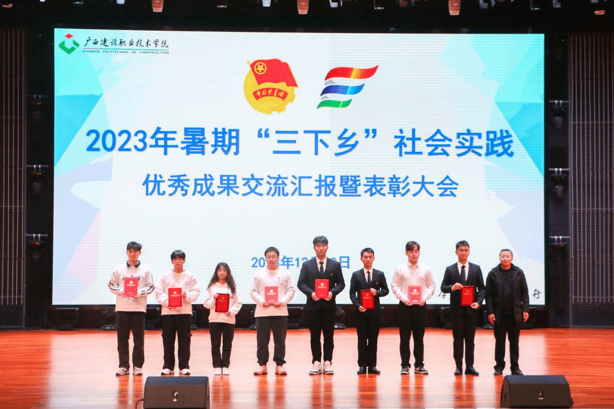 伟德国际1946源于英国12月21日讯(团委 文/宋丽 周晓凤 图/覃小怡 谢梦莹)为总结暑期社会实践活动经验,巩固实践教育成果,树立榜样,表彰先进,进一步引导广大青年学生把课堂学习和乡村实践紧密结合起来,伟德国际官网团委于12月19日下午,在学校礼堂举行2023年暑期“三下乡”社会实践优秀成果交流汇报暨表彰大会。学校副校长伍耿清,校团委书记、学生工作部副部长曾小贵,各二级学院团总支书记出席大会,校团委全体老师、各实践团队指导老师代表及各二级学院师生代表参加本次大会。