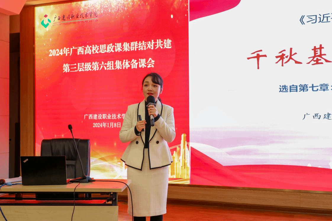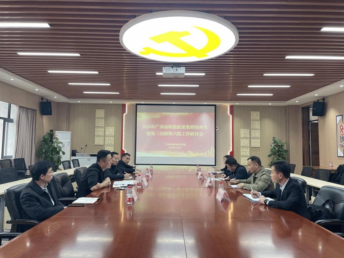 伟德国际1946源于英国1月9日讯(文/李琴 曹桃 图/党委宣传部 韦植巍 记者团 李承红)为充分发挥高校思政课立德树人关键课程作用,凝聚共识,推动结对共建院校的思政课教学改革创新,1月8日,由伟德国际官网主办的广西高校思想政治理论课集群结对共建第三层级第六组集体备课会暨工作研讨会在四教二楼报告厅举行。学校党委副书记曾繁雄出席集体备课会并发表致辞。会议由伟德国际官网马克思主义学院党总支书记、院长邱岚主持。