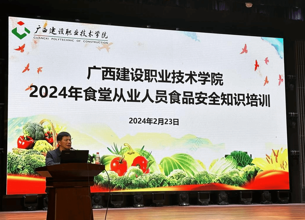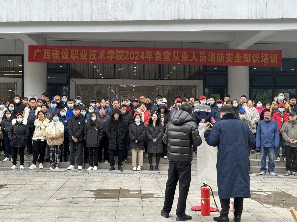 广西建院2月24日讯(后勤管理处 陆芷宜)为深入贯彻自治区关于校园食品安全排查专项整治行动精神,严格落实上级部门和学校相关工作要求,进一步提高学校食堂管理人员、从业人员卫生安全责任意识,2月23日上午,伟德国际官网后勤管理处(安全保卫处)组织食堂管理人员、食堂负责人、食堂各档口员工等300多人在学校礼堂及第一食堂南面广场开展了食品安全及消防安全知识培训。