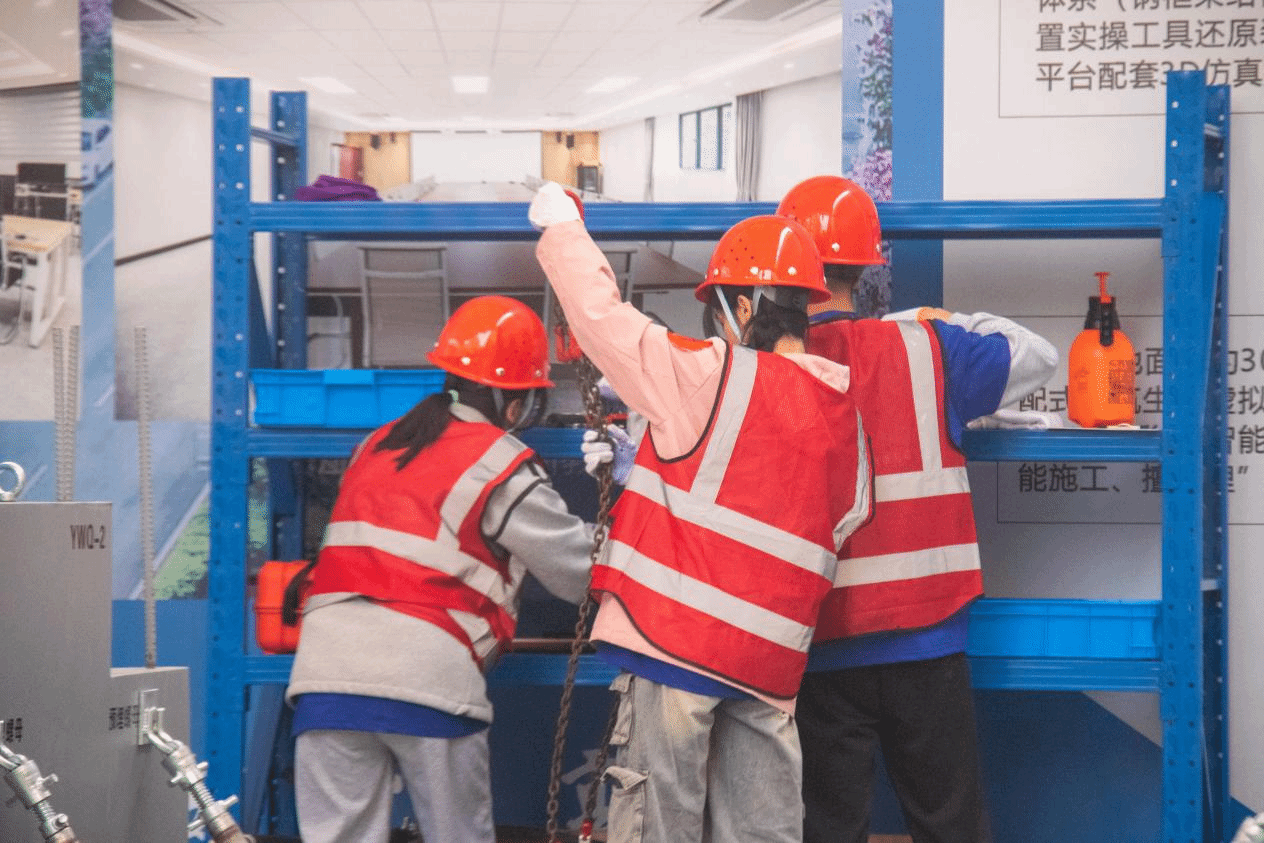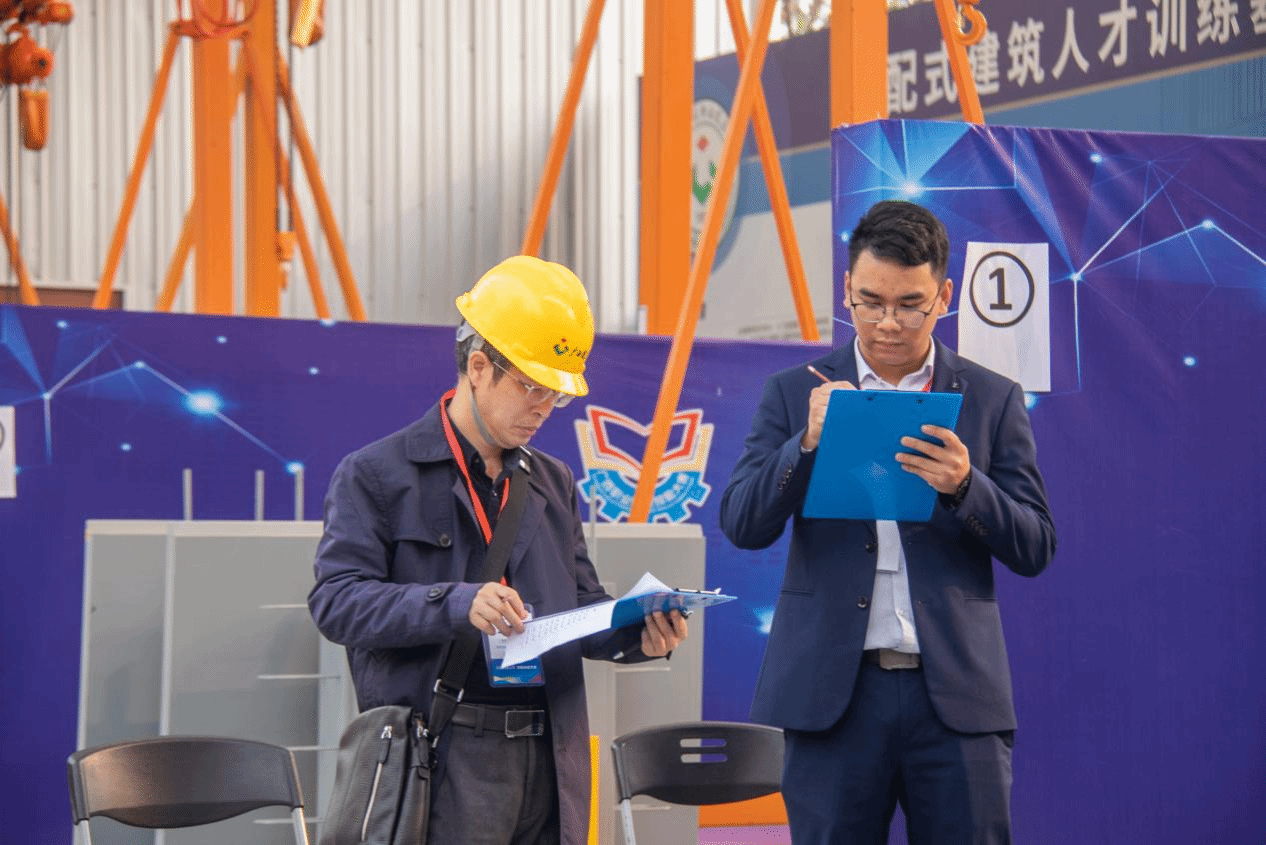 比赛期间,选手们利用BIM技术设计整座建筑的构件图纸,再通过仿真虚拟技术,还原在工厂生产构件的过程,并完成运用吊车进行真实构件现场安装及安装质量检验等工作任务,展示了扎实的专业技能和过硬的综合素质。