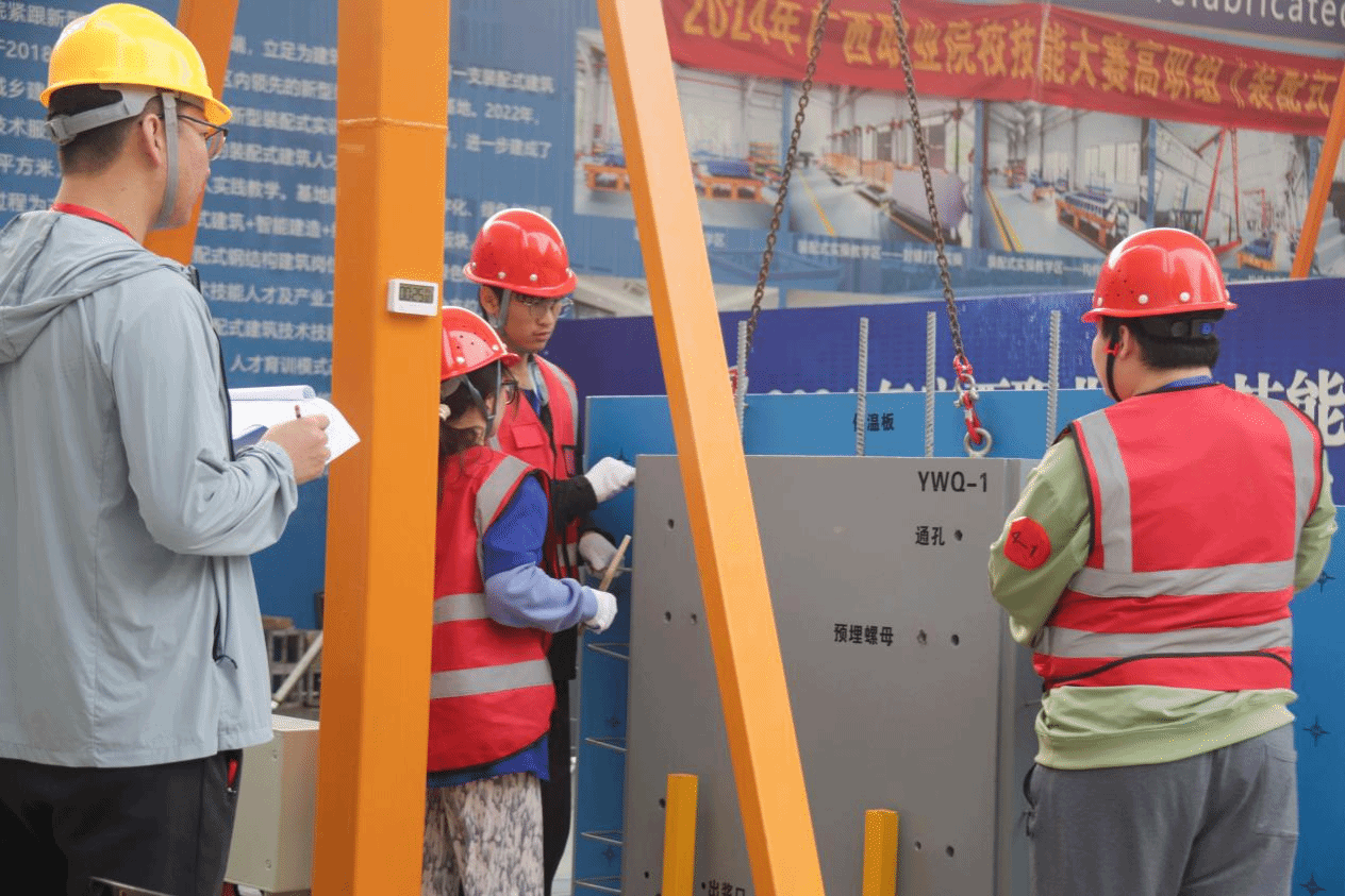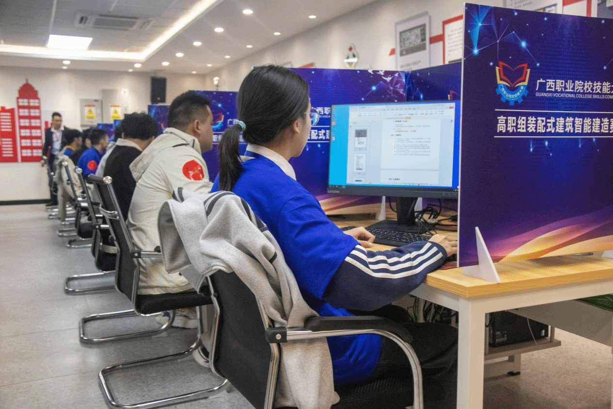 “装配式建筑智能建造”今年首次成为广西职业院校技能大赛赛项。该赛项以建筑产业转型升级为抓手,以服务数字建造强国为核心,全面对接建筑产业数字化、工业化、智能化发展新趋势,适应装配式建筑施工与管理等岗位群的新要求。赛项要求参赛选手在规定时间内,独立与合作完成包括信息化建模与方案编制、施工图识读与施工模拟、技能操作三个竞赛模块的任务。比赛重点关注参赛选手的专业技术技能、创新能力、职业素养、团队协作等能力,助力培养和选拔高水平技术技能人才。