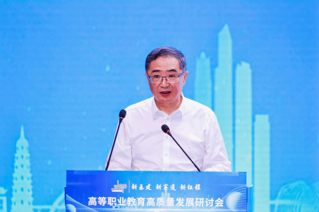 林宇主任在主旨报告中指出,职业教育当前的重点工作就是要落实好“一体两翼五重点”战略部署,通过“一体”以省部协商的方式充分发挥省级政府在发展职业教育中的积极性和主动性;通过“两翼”在“条”上发挥龙头企业、链长企业对上下游产业的动员力量,在“块”上发挥各级政府的行政力量,促进校企合作、产教融合。“五重点”是直接关系到人才培养质量的关键要素,要以专业建设为载体加强“五金建设”。他认为,高质量的职业教育至少应具有7个表征,即:先进的理念、清晰的定位、良好的条件、适合的培养、强大的功能、公认的水平、国际的影响。他强调,高职教育的高质量发展,以办学定位为指引,对接产业、融入地方;以专业建设为载体,夯实基础、提升水平;以国家项目为抓手,凝聚共识、树立示范;以数字技术为支撑,抢抓机遇、推进改革。