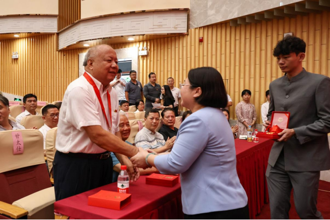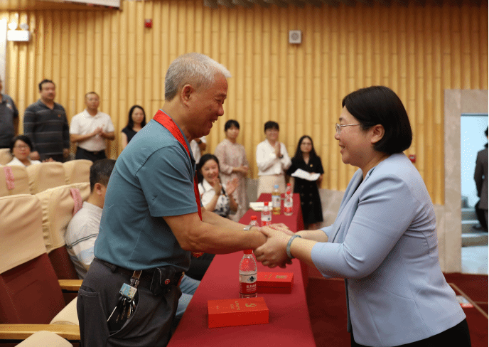 学校党委书记刘晓红为老党员甘太仕同志颁发“光荣在党50年”纪念章