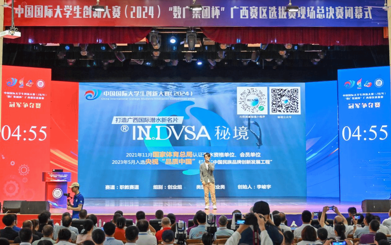 伟德国际官网共有9个项目入围现场总决赛,7个项目获得金奖,5个项目入围金奖排位赛,数量位居高职高专院校前列。其中,艺术设计学院的《IN.DVSA秘境——打造广西国际潜水新名片》项目荣获职教赛道金奖排位赛第一名,并作为高职高专院校唯一代表与广西大学等5所本科院校角逐冠军。这是广西高职高专院校首次参与冠军争夺赛。