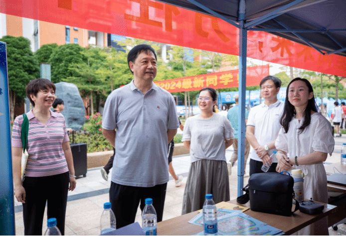 热心迎接。“欢迎你,2024级新同学”“征程万里向未来,万任千钧再出发”等欢迎语、激励语在学校大门口、主干道、各接待点随处可见,氛围感拉满。学生和家长们走到校门口就能感受到扑面而来的热情。学校领导及相关部门负责人均到报到现场查看迎新工作,与新生及送孩子到校门口的家长亲切交谈,回应关切。看到校领导们亲临现场迎接,师生志愿者们热情服务,校安保和民警力量的安全守卫,家长们倍感放心。