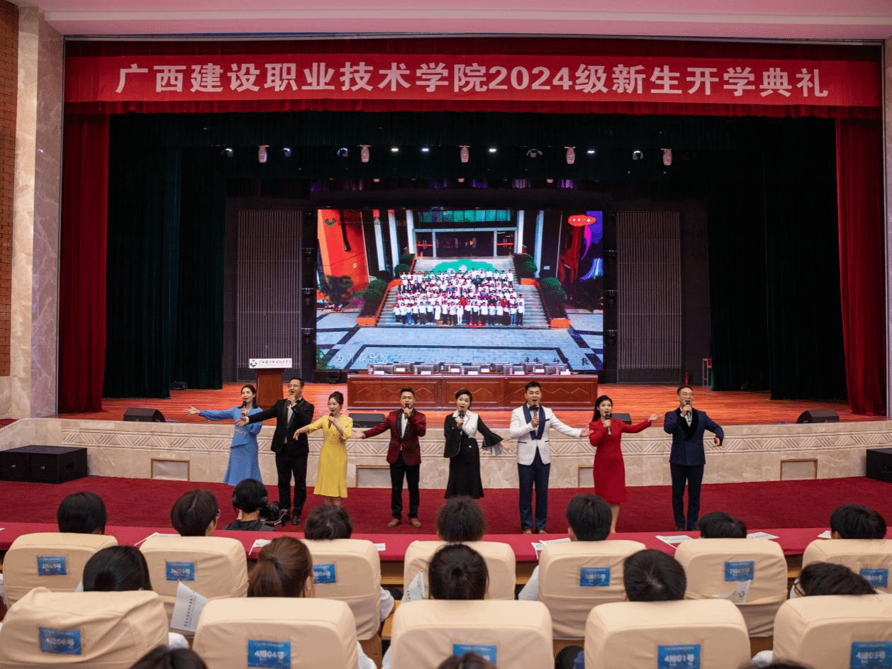在典礼开始前,2024级新生一同观看了学校宣传片《遇建》。辅导员代表以一曲《辅导员之歌》献唱新生,为青春的热情指引方向;学生代表则唱响《一起向未来》,展现青春的活力与憧憬;教师代表演唱的《阳光路上》,更是传递出对学子们的殷切期望与祝福。