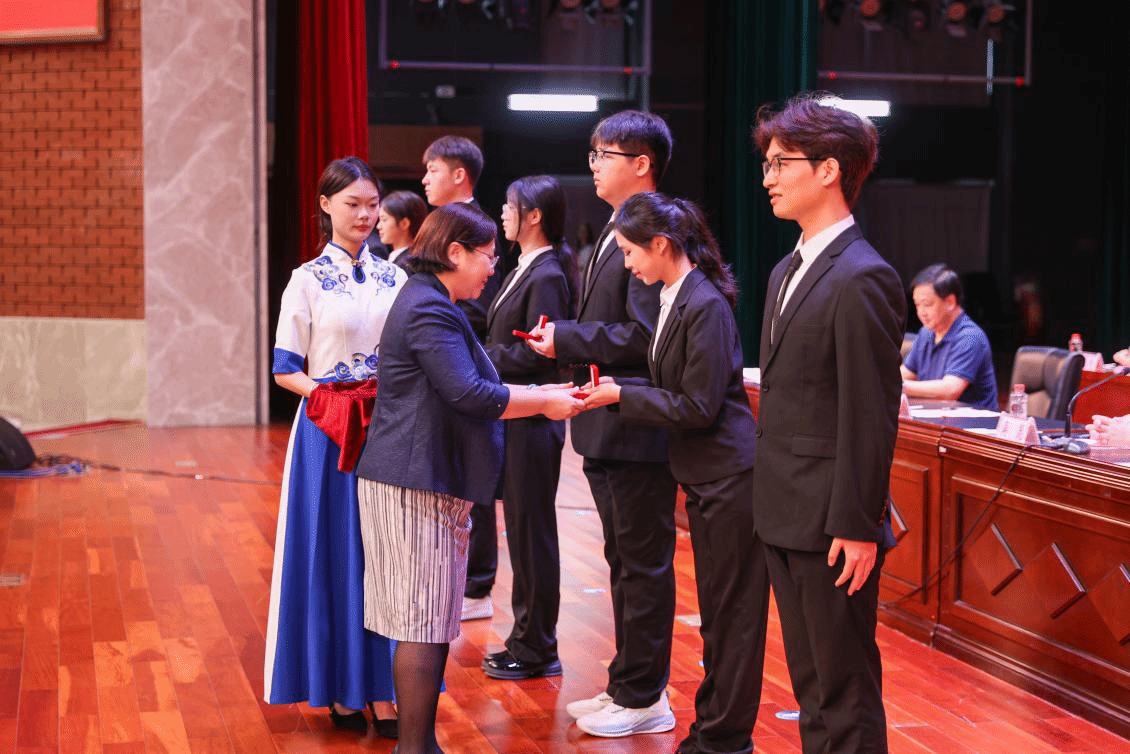 大会在庄严的国歌声中拉开序幕。刘晓红书记授予新生代表学校徽章,全体新生起立,庄严地将校徽佩戴于胸前,从此与建院血脉相连,“厚德 励学 敦行”的校训精神在一代代伟德国际1946源于英国人中薪火相传,汇聚成奋进新时代的精神力量。