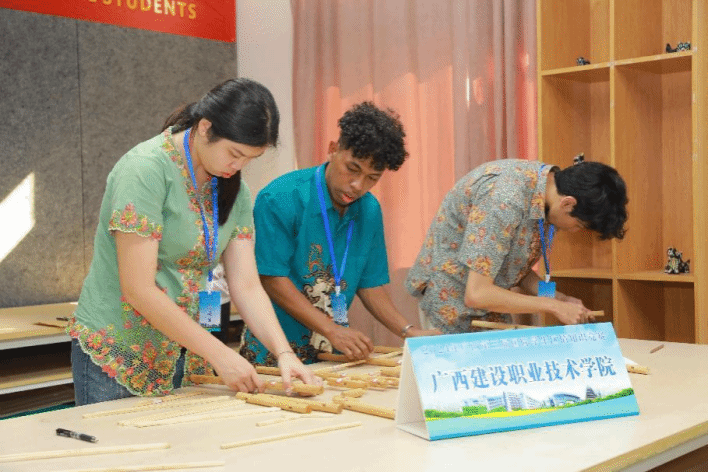 据悉,本届知识竞赛分为个人赛和团体赛,共有23所高校的69名留学生同台竞技。其中,个人赛由闭卷笔试和现场口头作文两部分组成,题目内容涉及中国以及广西政治、经济、历史、文化、风俗习惯等多方面的内容;团体赛以问答和实践形式进行,分为扎染、侗族木构、民族彩贴剪纸。最后,来自信息工程学院的胡恩瑄(DENISE HUSIANTO)同学和韩佑明(ALBERT GRACIOUS)同学获得个人赛三等奖;土木工程学院的杨自强(MANDASON YANCE ALAM WOILAND)同学获得个人赛优秀奖。伟德国际官网代表队荣获团体赛三等奖。