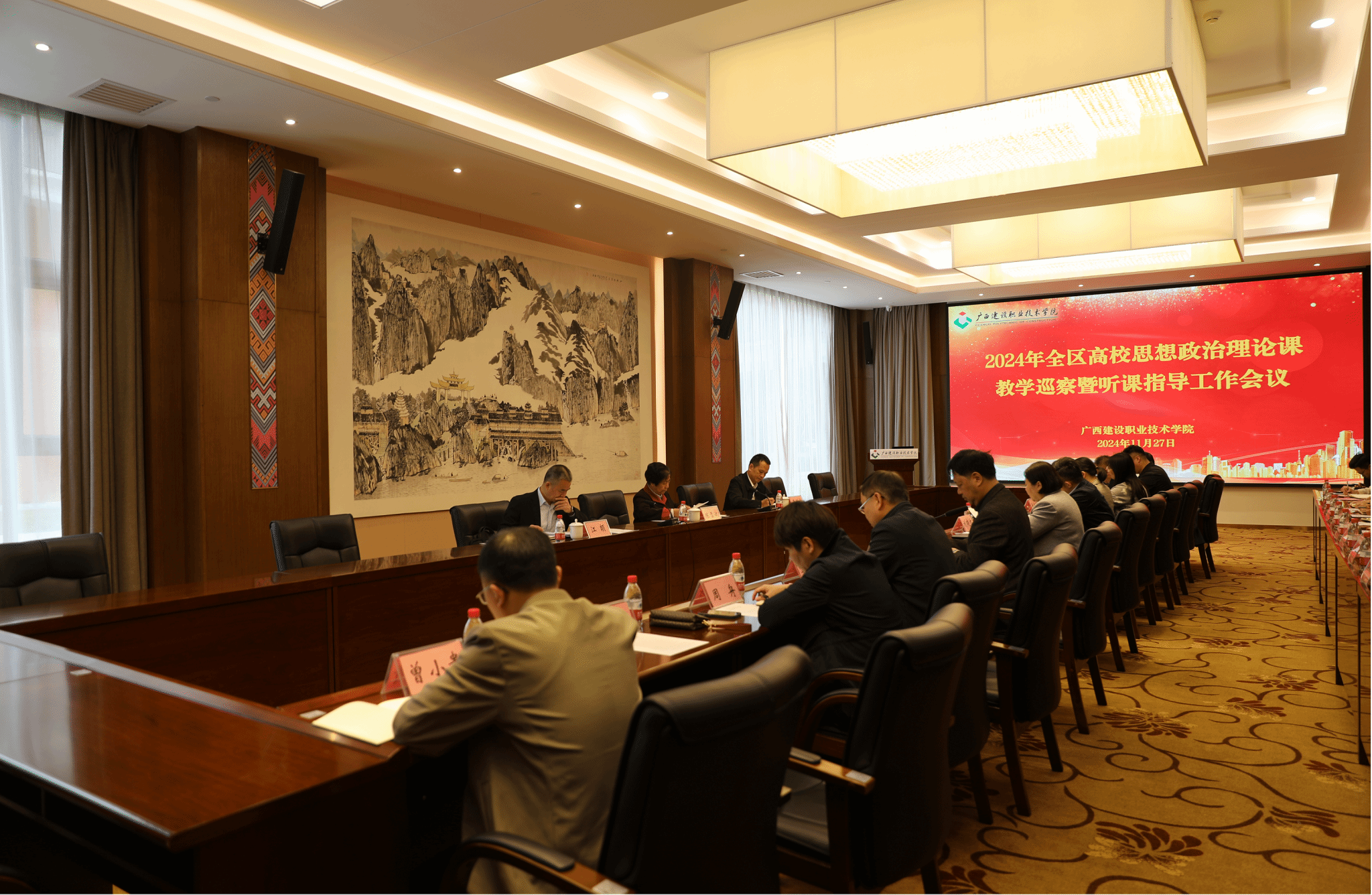 伟德国际1946源于英国11月28日讯(文/宋佳雄 图/韦植巍 毕莉)11月27日,以广西中医药大学原副厅级调研员陈雪斌教授为组长,广西机电职业技术学院副校长、马克思主义学院院长黄振宣教授,广西信息职业技术学院马克思主义学院院长江颉教授为组员的全区高校思想政治理论课教学巡察暨听课指导专家组到伟德国际官网开展思政课巡察指导工作。学校党委书记刘晓红、党委副书记曾繁雄、相关职能部门、各二级学院党政负责人以及马克思主义学院班子成员参加会议。