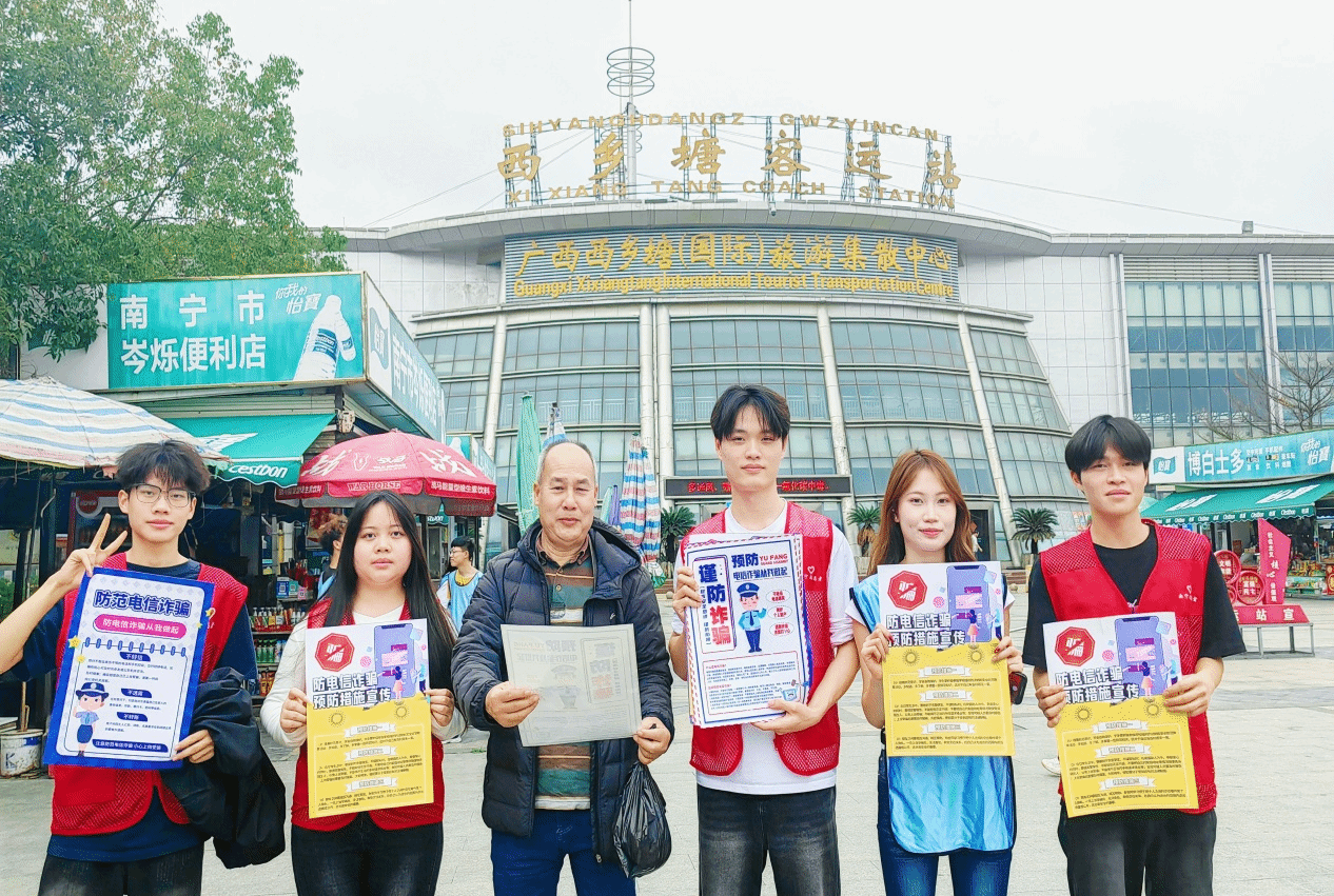 除了清洁工作,反诈宣传也是此次活动的重要内容。在客运站内,同学们通过发放宣传资料、现场讲解等方式,向旅客和周边居民宣传反诈知识。网络2305班邓会龙同学深有感触地说:“在进行反诈宣传时,我意识到很多人对诈骗手段缺乏足够的了解,这让我们更加坚定了宣传反诈知识的决心。能够帮助大家增强防范意识,我觉得这次活动非常有意义。”