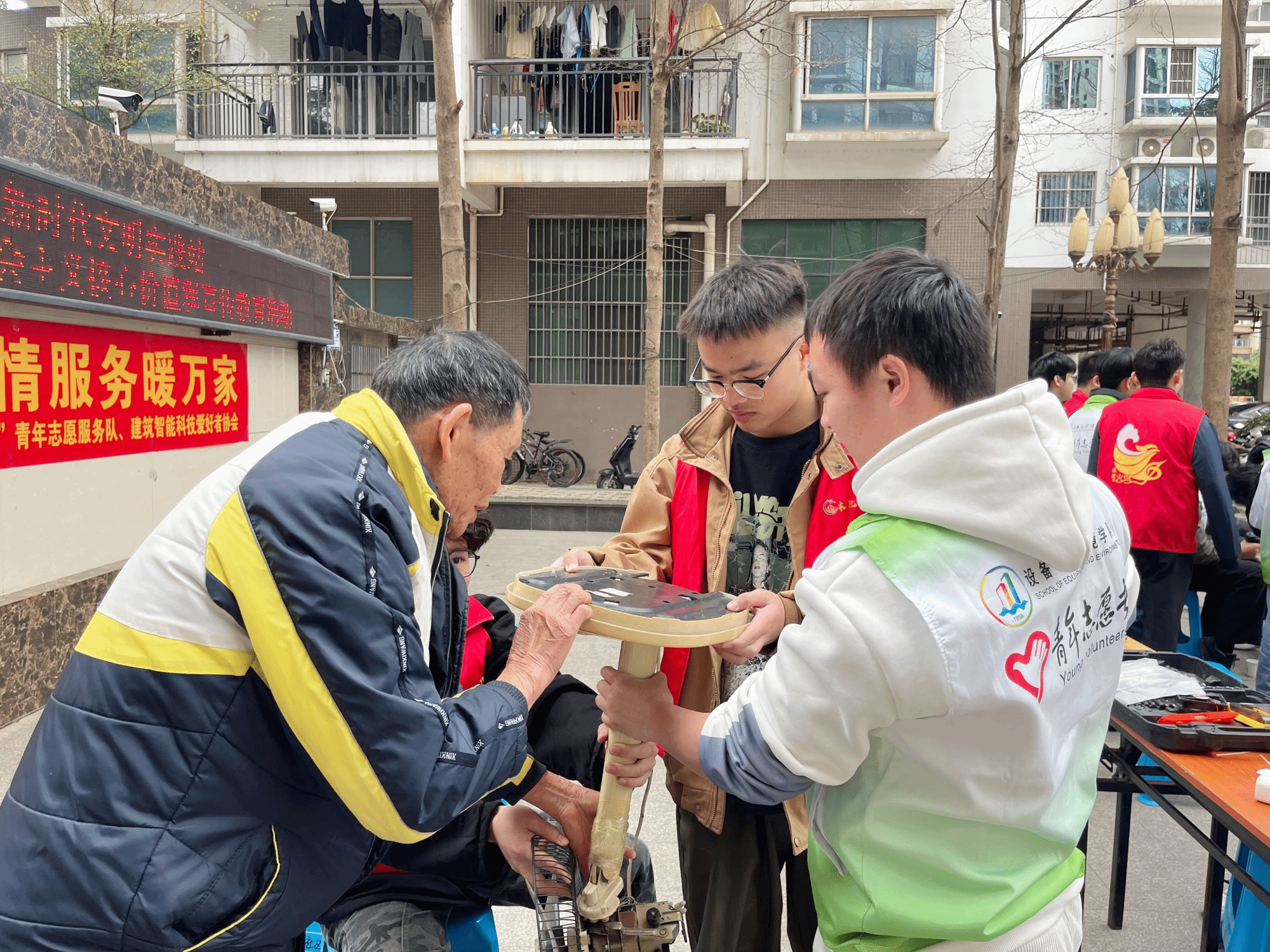 活动当天,西乡塘社区书记黄丽晓对设备与环境学院青年志愿服务队的到来表示了热烈的欢迎,在活动现场,服务队被分为多个小组,每个小组都明确了自己的职责和任务。有的小组负责接待居民,登记需要维修的家电信息;有的小组则负责现场维修。在指导老师带领下,运用所学知识和技能,对居民送来的电饭煲、电风扇、电水壶等小家电进行了细致地检查和维修。维修过程中,志愿者们耐心地向居民解释电器故障的原因和维修方法。