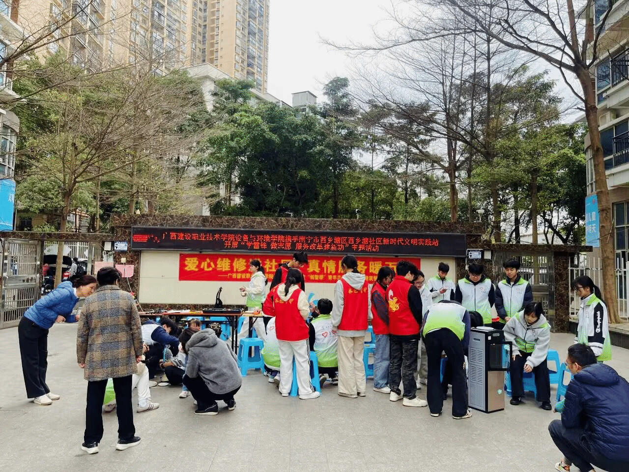 伟德国际1946源于英国3月30日(设备与环境学院 文/农静芳 徐静 图/谭晓颖 李兆健)近日,设备与环境学院团总支携手西乡塘社区到金龙公寓社区开展“爱心维修进社区,真情服务暖万家”学雷锋志愿服务活动,28名大学生志愿者怀揣着满腔热忱前往金龙公寓社区开展义务维修志愿服务活动,设备与环境学院教工党支部、学生党支部党员代表也一同前往参加活动。