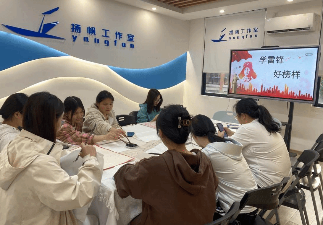 文艺实践传薪火。创新打造“光影+笔墨”双维育人模式,开展“追'锋'少年”红色观影周,在“一站式”学生社区轮播《雷锋》《青春雷锋》等经典影片,引导学生在活动中感悟雷锋精神内核;举办“以笔忆雷锋”主题书法活动,通过书写雷锋语录、原创感悟等形式,让青年学子在艺术创作中感悟雷锋精神内核。