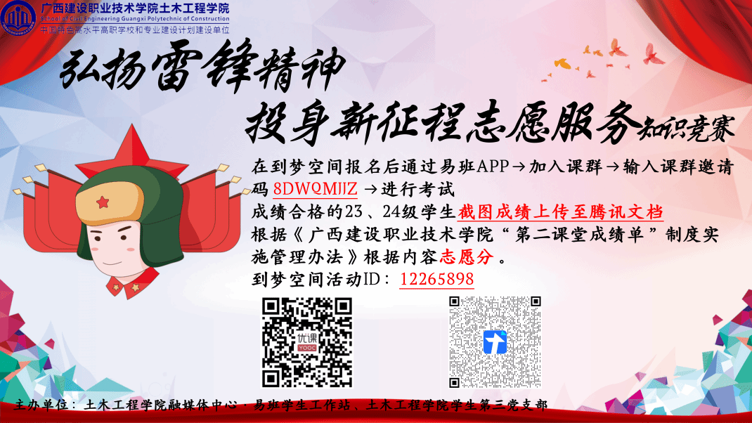 伟德国际1946源于英国3月28日讯(土木工程学院 文/石明成 图/土木工程学院)为大力弘扬雷锋精神,2025年3月,土木工程学院团总支以“志愿青春扬新风 雷锋精神永传承”为主题,精心组织开展了形式多样、内涵丰富的“学雷锋”主题月系列活动。活动涵盖理论学习、文艺实践、志愿服务三大板块,累计开展专项活动9项,参与师生达3000余人次,在校园内外掀起学雷锋、做雷锋的热潮。