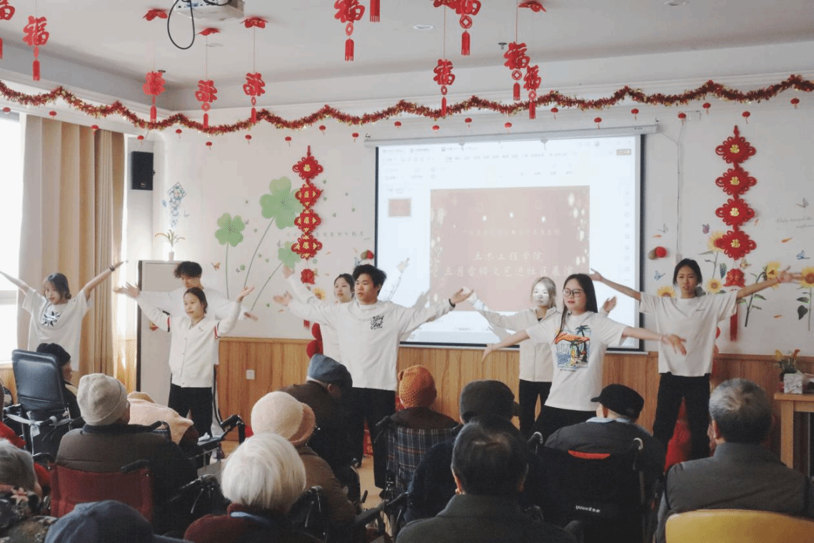 志愿服务践初心。学院组建涵盖500名师生的志愿服务队。开展三大专项行动:一是“美丽社区”环境整治行动,组织志愿者赴相贤社区开展卫生清扫;二是“情暖夕阳”敬老爱老行动,在喜康养护院举办公益文艺汇演;三是“技能护航”赛事服务行动,为广西职业技能大赛提供全流程志愿服务。累计服务时长超5000小时,以实际行动书写新时代雷锋故事。