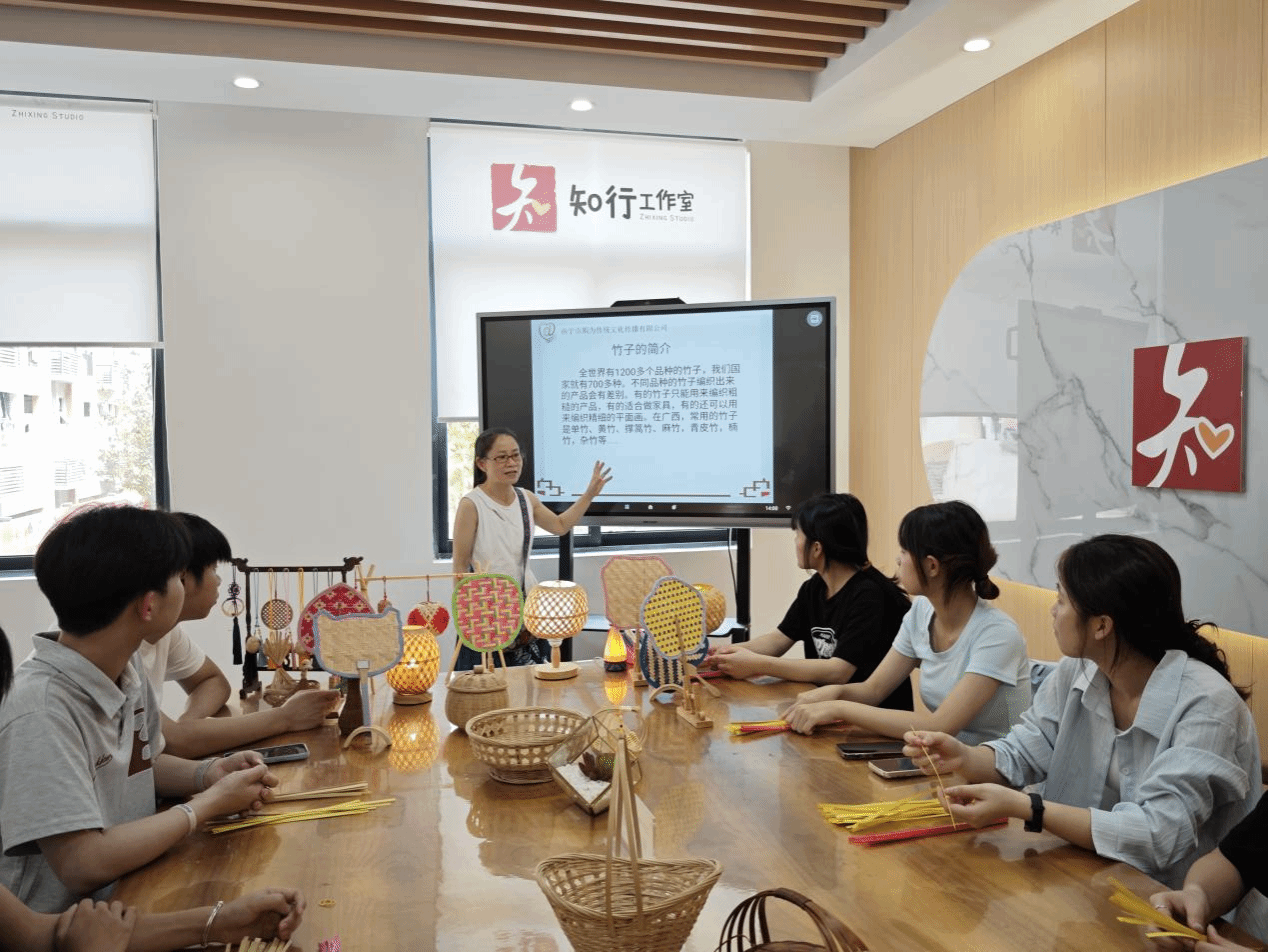 为深化非遗保护传承,知行工作室特邀竹芒编非遗技艺传承人黄海梅走进校园,结合“广西三月三”节庆给学生上了一堂“共话民传”微课堂。黄海梅老师向同学们展示了纤细竹篾如何幻化为精巧的扇面,并手把手教授学生编织技法。“每一根竹篾的穿插都考验耐心与匠心,这让我体会到非遗不仅是手艺,更是匠人的坚守。”市政学院学生小黄在完成竹编扇后感慨道。
