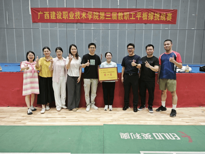 本届挑战赛延续了往届“个人竞技+团队协作”的双重赛制。个人赛中,参赛者需以标准平板支撑姿势坚持,角逐男女组别冠军;团体赛则以工会小组为单位,累计小组成员的时长总和进行排名决出一、二、三等奖。比赛现场,教职工们热情高涨,既有经验丰富的“老将”沉稳应战,也有初次参赛的“新兵”突破自我。体育馆内助威声此起彼伏,参赛者们在激励下咬牙坚持,观众席不时爆发出热烈的掌声。最终,艺术设计学院工会小组获团体第一名,展现了强劲的团队实力。艺术设计学院辅导员韦江宁以23分02秒的成绩摘得男子组冠军,刷新了往届纪录;艺术设计学院辅导员周楠以31分23秒取得女子组冠军。