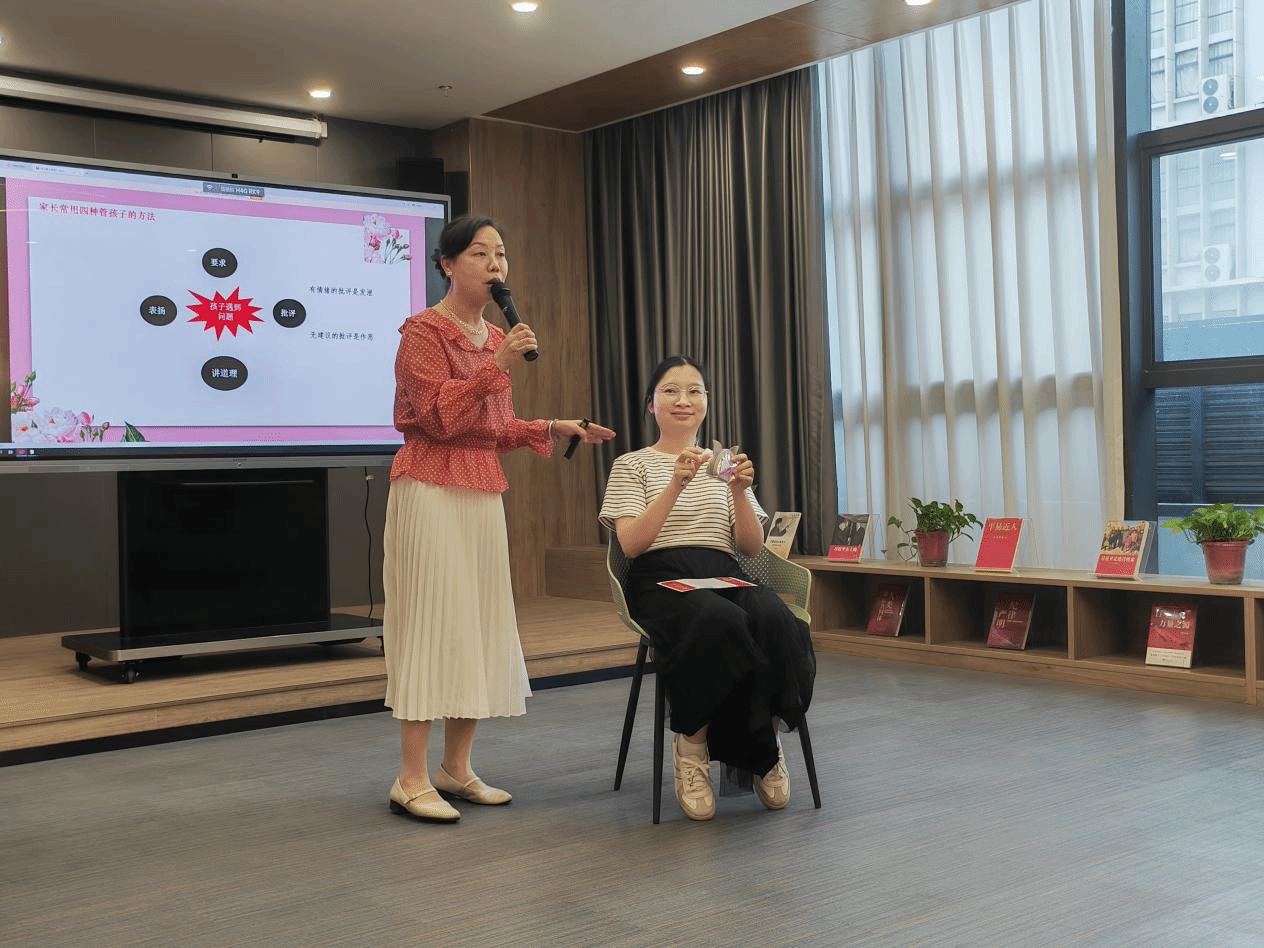活动中,卢老师以自身亲子关系、生活、学习及沟通常见问题作为切入点,先让各位老师发表自己的看法。接着,她细致分享、耐心讲解,使在场的老师产生共鸣,有所启发。卢老师让老师们描述亲子沟通的各种困难和问题,然后逐个分析其中原因,并给予建议。活动现场还准备了两个生动的互动体验,让老师们切身体会到家长的“管”对孩子产生的影响力。大家积极参与,现场氛围轻松而温馨。