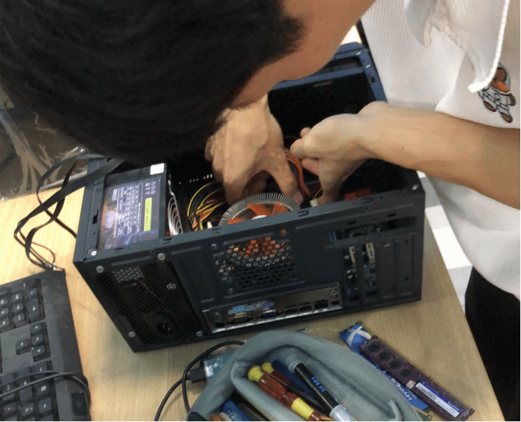 专业服务,温情互动。活动现场,志愿者们俯身清理电脑灰尘、检查硬件的身影成为最温情的画面。一台台电脑在技术组成员的手中“重获新生”。“记得保管好螺丝!”志愿者不时提醒道。而在“软件安装区”,志愿者们不仅帮同学们配置编程环境,还耐心讲解操作技巧,让不少同学笑称“赚到了一节免费实训课”。值得一提的是,本次活动还创新推出了远程服务。当志愿活动信息发布到工作室交流群后,一位不在校的同学留言:“我想安装软件,但人不在学校,能帮忙吗?”志愿者当即表示可以远程协助,最终成功解决问题。