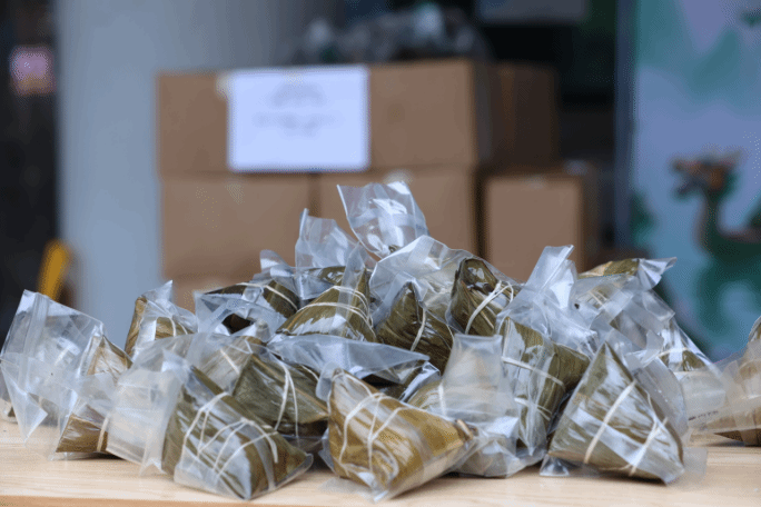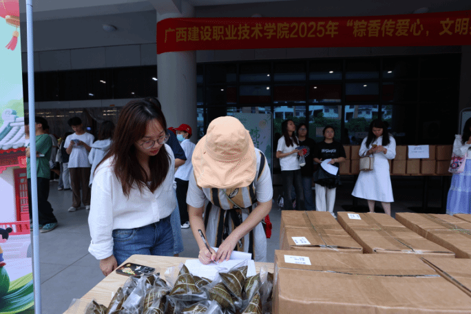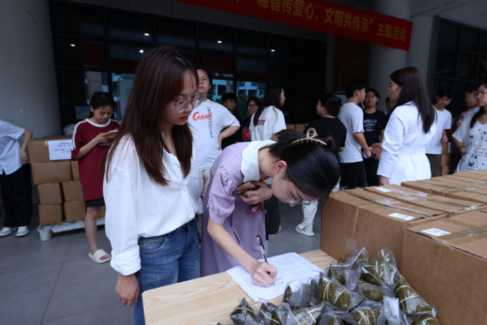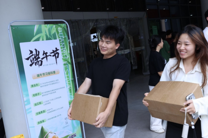 本次活动由学校第一食堂广西万乡河餐饮集团有限公司全额赞助,提供多种口味的粽子,包括板栗肉粽、黑米肉粽等,满足学生的不同需求。活动现场,后勤管理处的老师们精心组织,各学院代表有序领取,欢声笑语中洋溢着节日的喜悦。