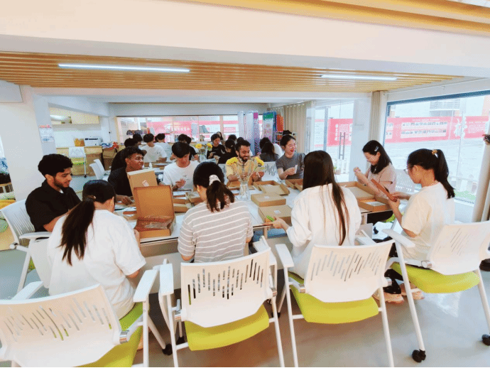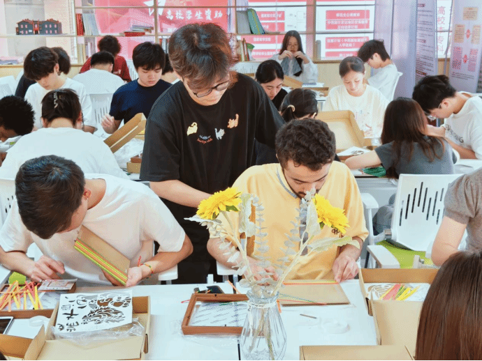 在DIY竹编相框环节,同学们化身“手工达人”,拿到竹条和工具后,便开始了一场创意之旅。在老师的指导下,大家学习基本的竹编技巧,一根根竹条在手中交织、缠绕。一位留学生兴奋地说:“这是我第一次接触竹编,太神奇了!我从没想过可以用竹子做出这么漂亮的东西。”这些相框不仅承载着他们的心血,更成为一份独特的端午记忆,见证了青春与传统的完美融合,也展现了文化的无国界魅力。