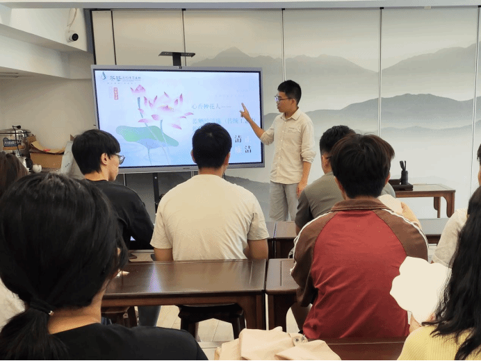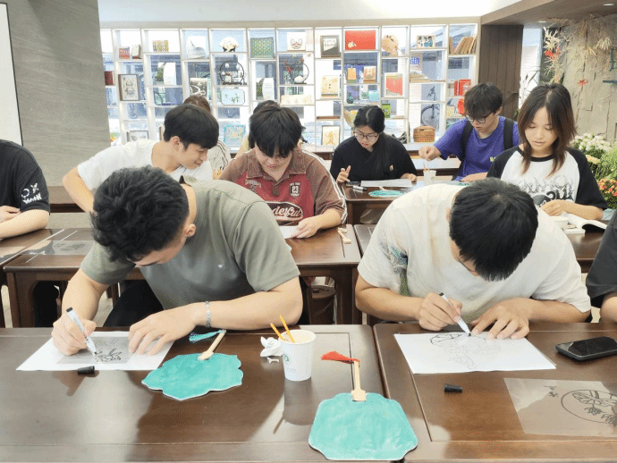 学院依托“心香种花人”一站式学生社区品牌,创新开展“荷风廉韵,蓝晒传情”廉洁文化体验课。活动中,辅导员黄铁华将传统蓝晒工艺与廉洁文化巧妙融合,指导同学们在纸扇上创作以“莲”为主题的廉洁作品。通过调色、构图、晒制等环节,同学们体验了传统工艺的独特魅力,更深刻领悟到“出淤泥而不染”的廉洁真谛。这种寓教于艺的沉浸式体验,让廉洁教育在艺术创作中自然浸润心田,实现了价值观的无声滋养。