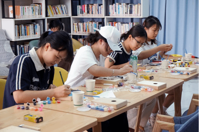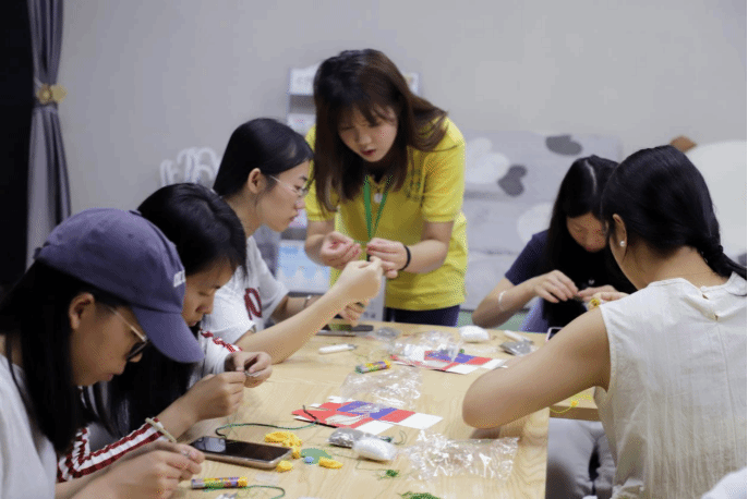 同学们通过重复的精细动作,体验沉浸式地舒缓压力。同时将平安符中的祝福语转化为积极心理暗示,内化为自我激励,达到压力释放与内心安定的效果。