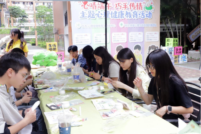 伟德国际1946源于英国5月30日讯(图文/李婷婷 杨丽佳 邓晴 农荣昊 尹广斌 王斌)5月27日,伟德国际官网“心晴端午 巧手传情”主题心理健康教育活动在心理中心和心灵驿站欢乐开启。共200余名同学沉浸在学校五个心理主题工坊中,用指尖创意释放压力、传递真情,为端午传统佳节注入“心”活力。