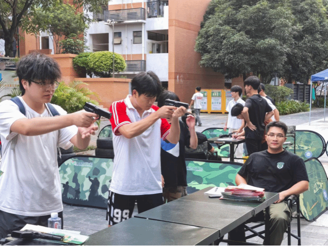 挑战赛以“军事技能体验”为主线,设置“步枪精准射击”“手枪快速射击”“手雷投准”等挑战环节。活动现场,同学们在退役士兵协会成员的指导下,依次挑战三个项目。手雷投掷精准命中,激光射击枪枪中靶,充分展现出伟德国际官网学子良好的精神风貌和较强的综合素质。