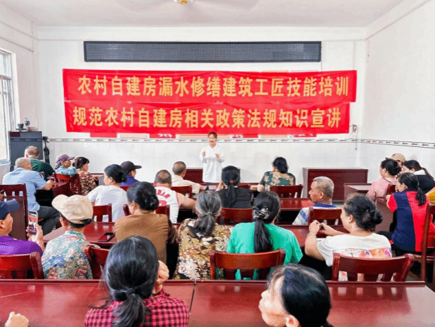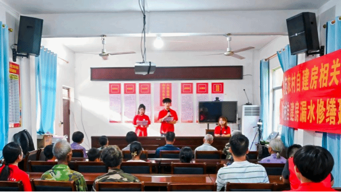 实践团与当地村委结对共建,联合村“两委”举办规范农村建房相关政策法规知识宣讲会。针对村民建房规范意识薄弱、安全隐患突出的现状,队员们通过展示危房改造前后对比图、播放自建房安全事故警示片等方式,生动讲解农村宅基地审批流程、建筑安全规范等知识,现场解答村民关于建房审批、施工标准等疑问。宣讲活动不仅提升了村民的安全建房意识,还让队员们深化了对乡村振兴政策法规的理解。