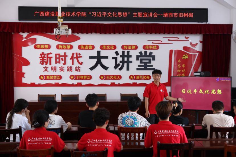 在旧州古镇和康城社区,实践团化身理论宣讲轻骑兵,创新理论宣讲形式:壮语版《唱支山歌给党听》引发村民强烈共鸣,《红色建筑镌初心》视频展播让退伍军人热泪盈眶。“党的声音真正淌进了壮乡心坎里”的群众反馈,印证了文化润疆的实效。