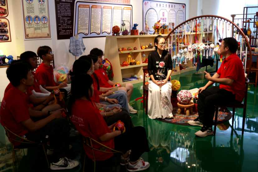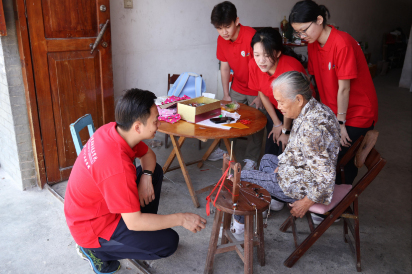 实践团深度调研当地非遗传承现状。在壮锦厂,记录国家级传承人李村灵坚守“三不”原则(不简化工序、不妥协配色、不降低标准)的匠人精神;在绣蕴坊,体验“一小时仅完成半片花瓣”的绣球制作技艺;拜访83岁“中华巧女”黄肖琴,学习万针堆绣绝活。团队通过专业设备系统采集口述史与技艺影像,为编著《匠心·同心》非遗故事集积累了大量一手资料。队员亲身体验织锦工艺,4小时仅织出10厘米锦带的实践,让年轻学子深刻感悟到一幅传统壮锦需12公里丝线、4800工时的厚重匠心,体会到传统工艺的价值与传承的紧迫性。