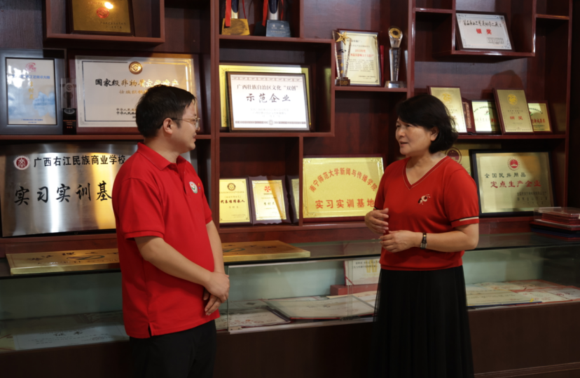 实践团充分发挥专业优势,深入5个村屯(社区),密集走访企业、传承人、绣娘和居民,系统剖析边疆产业发展路径。重点调研了绣蕴坊“机械臂+绣娘手”的发展模式,详细记录其带动20个村屯、800余名绣娘,年均增收超2万元的显著成效。基于调研,团队总结成功经验,创新提出“订单到户+技能培训+电商直播”全链条方案,凝练成《靖西非遗传承与特色产业发展调研报告》,为产业升级注入了青春智慧。
