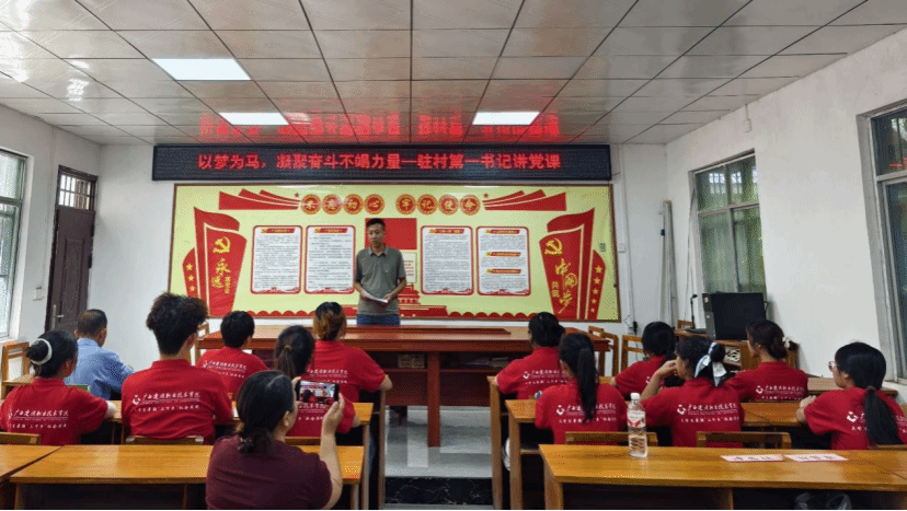 实践团与万茂村党总支开展结对共建,聆听“双料书记”宋佳雄的动人故事。当听说万茂村驻村第一书记宋佳雄是伟德国际1946源于英国马克思主义学院的专任教师,且今年是他第二次驻村担任第一书记时,实践团的同学们对宋书记与万茂村的故事都特别期待。活动期间,实践团师生请宋书记为学生们上党课。宋佳雄书记详细介绍了万茂村近十年来在伟德国际1946源于英国的大力帮扶下,经济建设、生态文明建设等方面取得的成绩,帮助师生全面了解村情村貌。