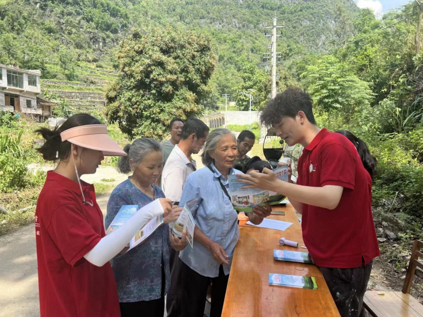 万茂村现有村民500多户,以老人居多。生态文明知识科普在这里尤为需要。为此,实践团针对大石山区特点,搜集、整理、制作了简洁生动、图文并茂的生态文明科普小册子,将宣传点设到乡间路边,吸引不少群众参与其中。
