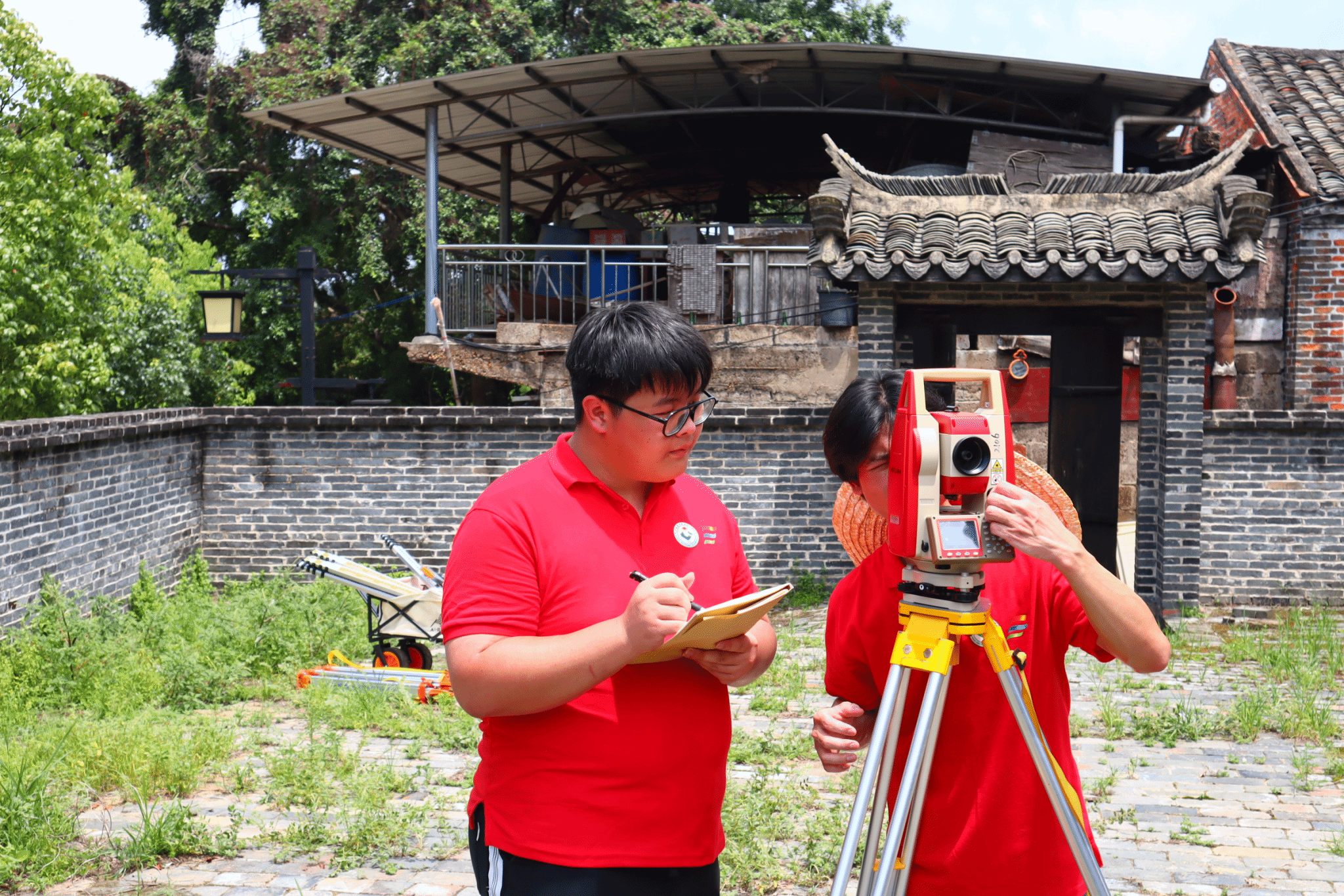 在专业教师指导下,实践团运用全站仪、测绘仪等设备,对三江坡传统建筑开展精准测绘。通过三维建模技术,将梁柱纹样、院落布局等建筑元素转化为数字化档案,不仅丰富了当地古建数据库资源,更为后续修复与活化利用提供了科学依据。