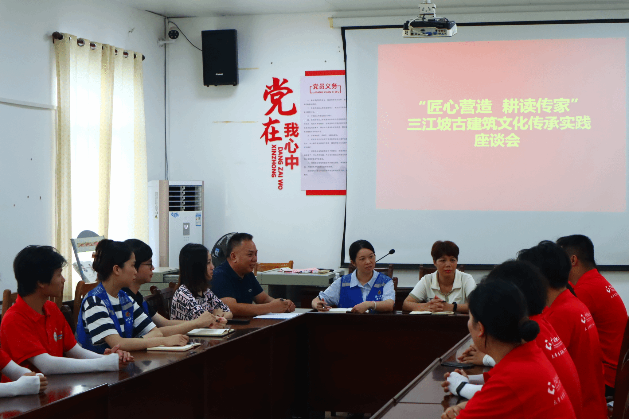 实践团抵达三江坡后,与驻村第一书记、村“两委”干部及乡村致富带头人展开座谈交流。结合前期调研数据,团队创新性提出“微改造+轻旅游”方案,包括修复古巷肌理、打造非遗体验工坊、开发“古建寻宝”研学路线等,力求在保护历史风貌的同时激活文旅价值。