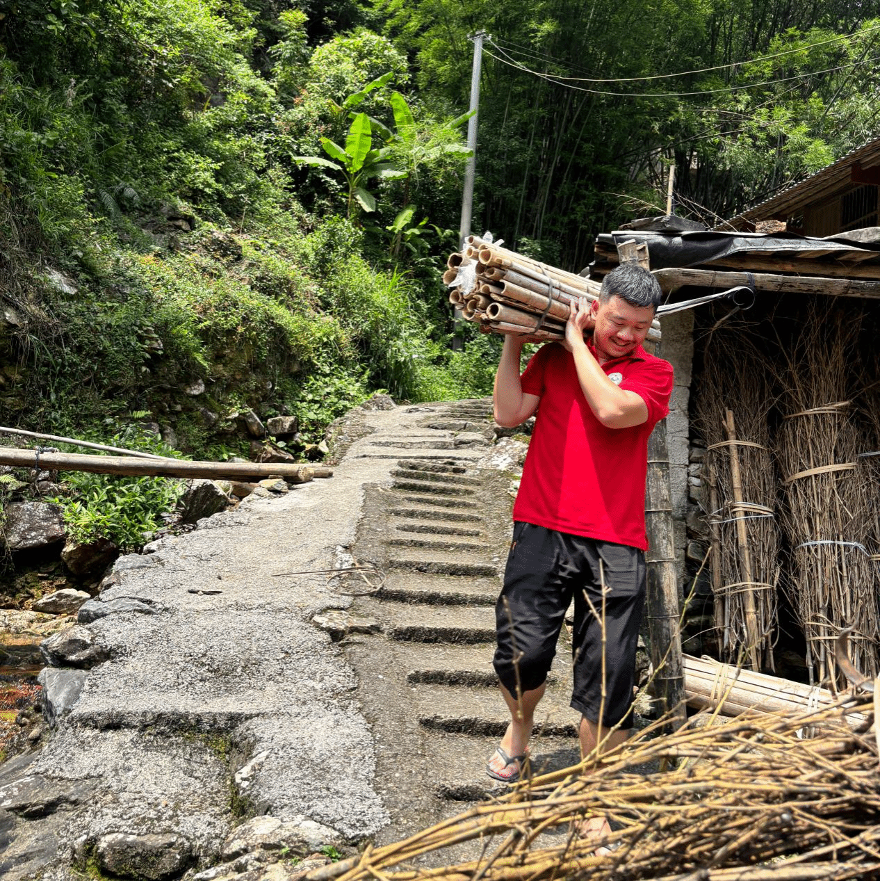 帮村里老人捡拾柴火