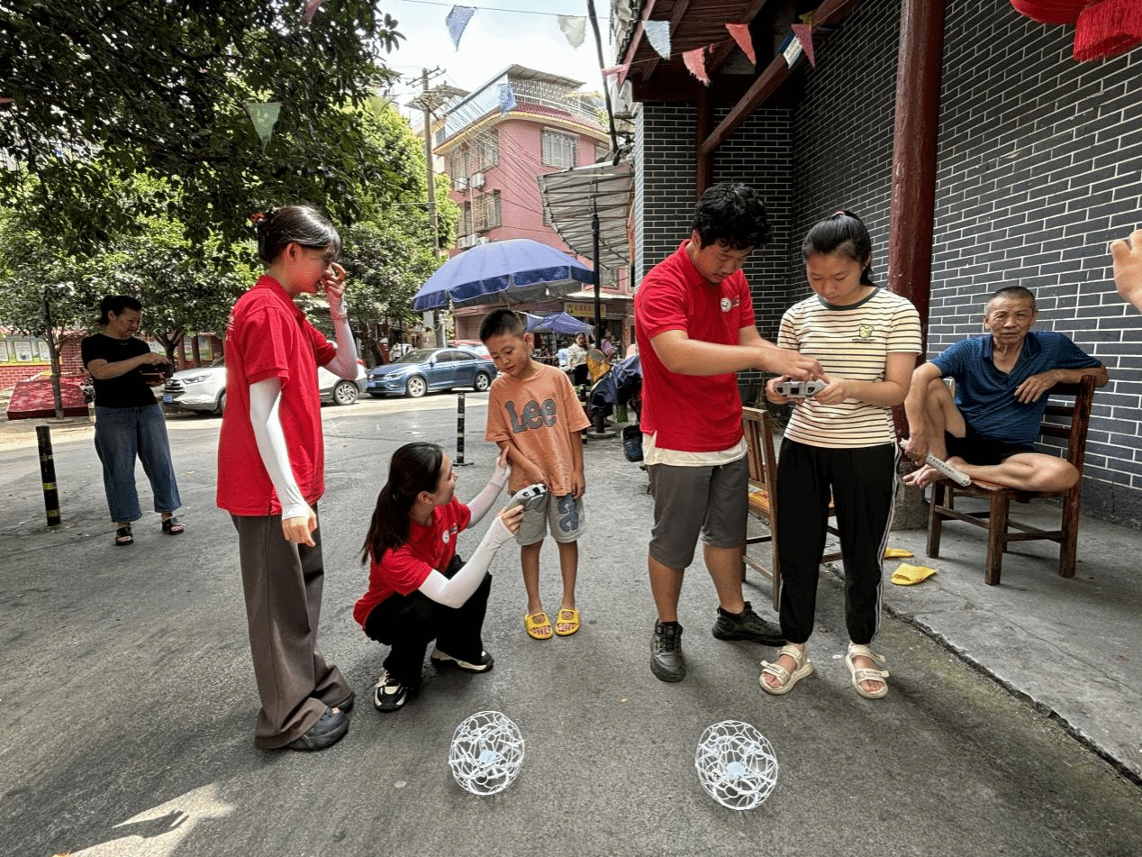 7月16日,彭家岭村迎来科技新风。团队成员化身“科技讲师”,为孩子们带来生动的无人机科普课。原理讲解结合飞行演示,点燃求知火花。“看!它飞起来了!”的欢呼响彻田野。
