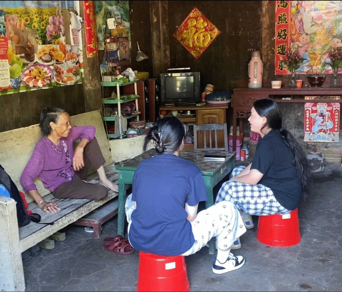 聆听老人讲述当地乡村故事